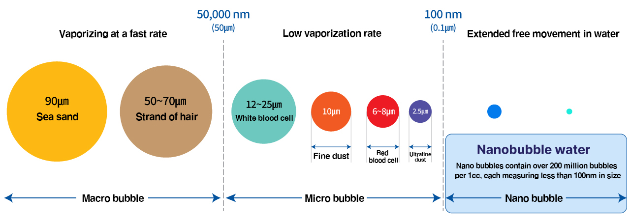 이 미세한 크기의 버블은 일반적인 물속 기포보다 훨씬 작아